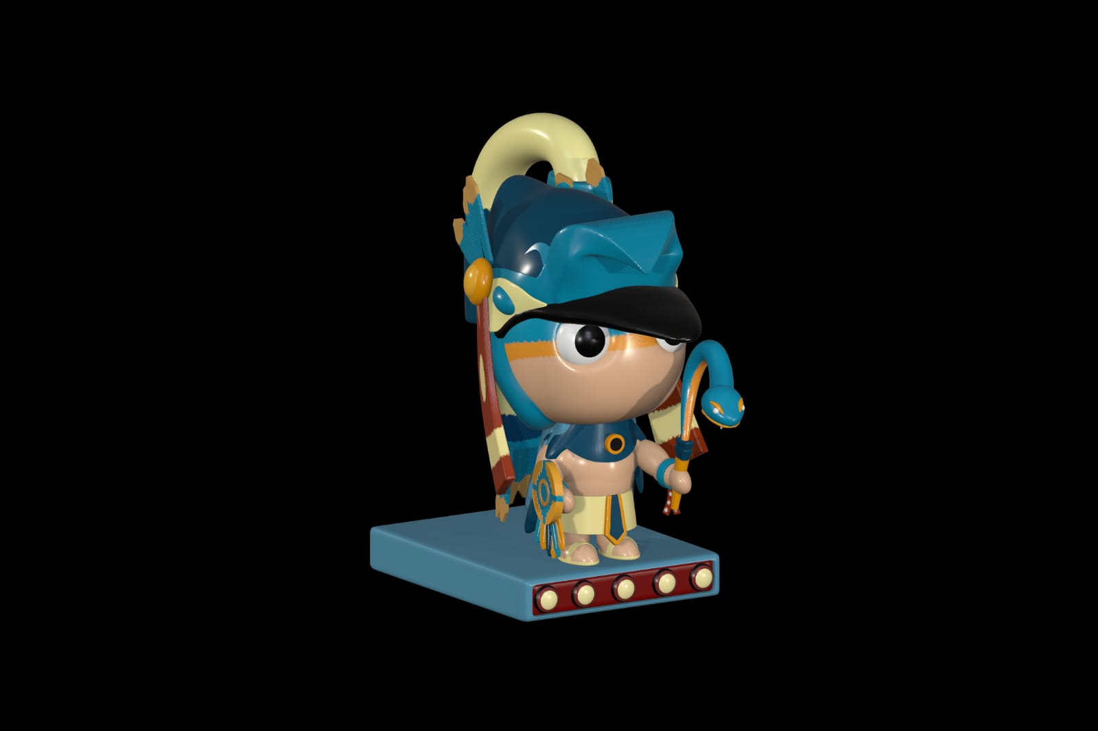 Perfecto para impresión en 3D, decoración, proyectos educativos o como pieza única en tu colección de dioses prehispánicos en versión kawaii.